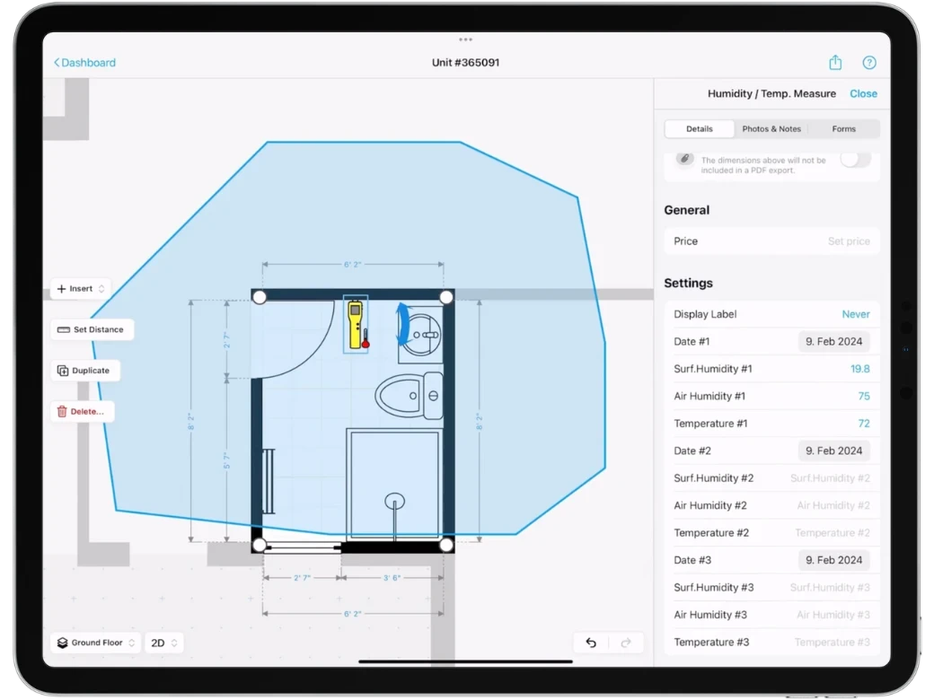 Utilizing a high-quality floor plan app, such as magicplan, can streamline this process by allowing you and your team to generate detailed PDF reports containing your moisture maps. This easy step can expedite the claims process and ensure a positive outcome for all parties involved.