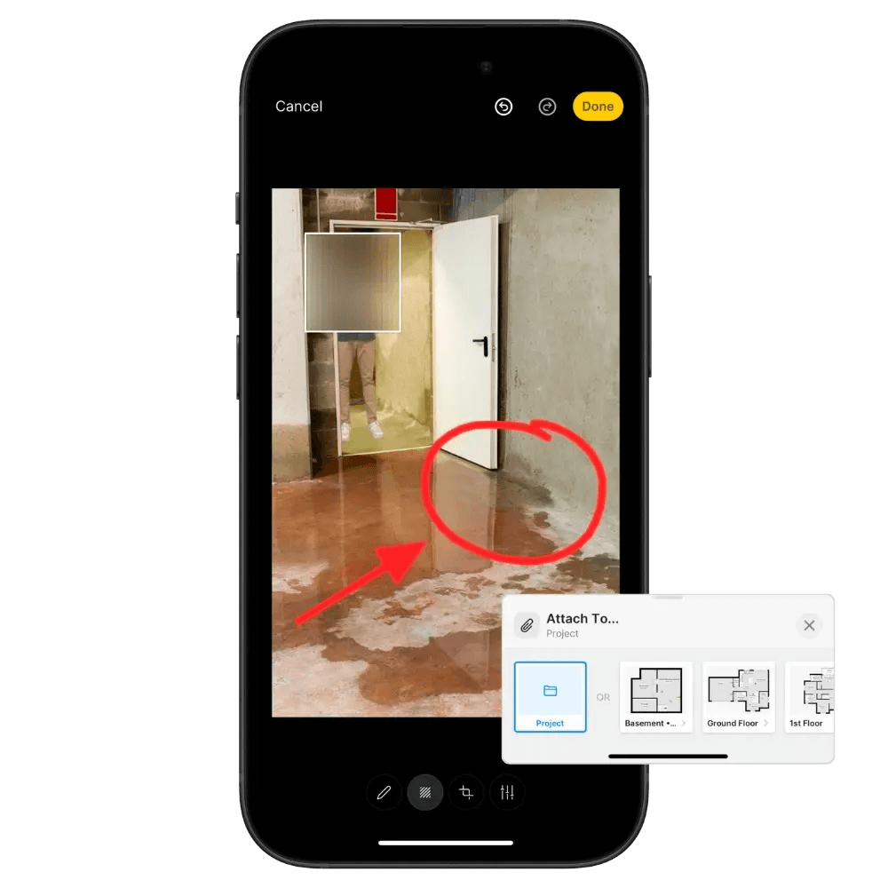 Need a containment barrier set up? Snap a picture, mark it up with the barrier placement, and send it to your team with notes like, “Set it up here.” Once the crew completes the task, they can take a photo from the same angle, and you’ll know the job was done right. With magicplan, the photo markup feature lets you add text, arrows, shapes, and figures directly onto the photo to show exactly what needs to be done.