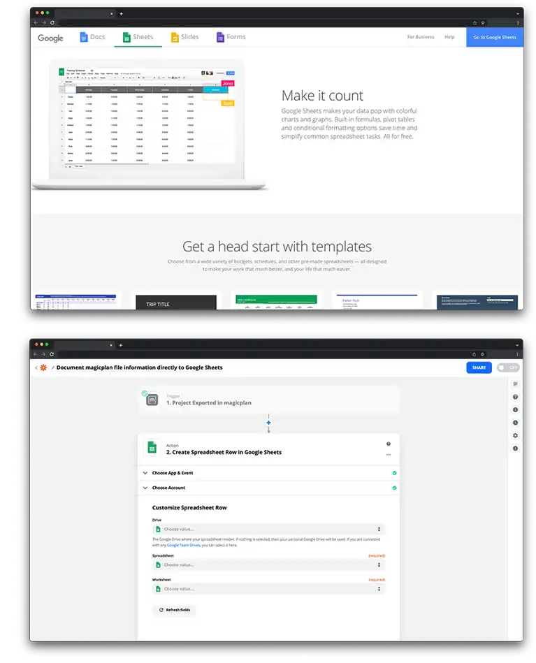 Google Sheets magicplan integration
