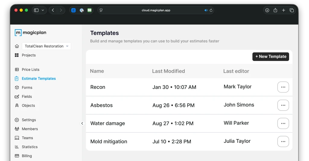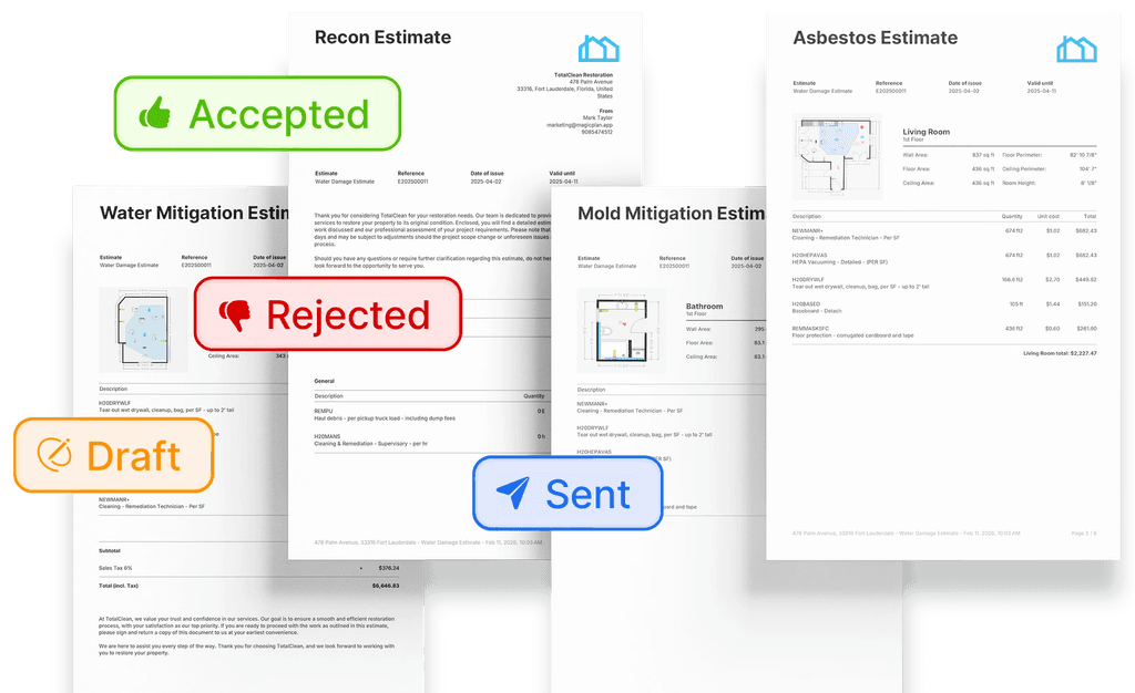 Water mitigation. Mold remediation. Contents pack-out. Grab a template built for the job type and customize from there. No starting from scratch every time.